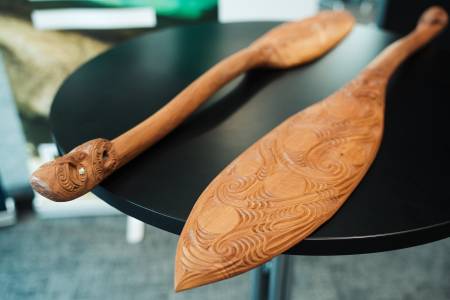 In the quiet before the formalities began, a waka hoe stood at the front of the room – its twin headpieces carved to reflect two traditions. One represents Western governance, the other te ao Māori.